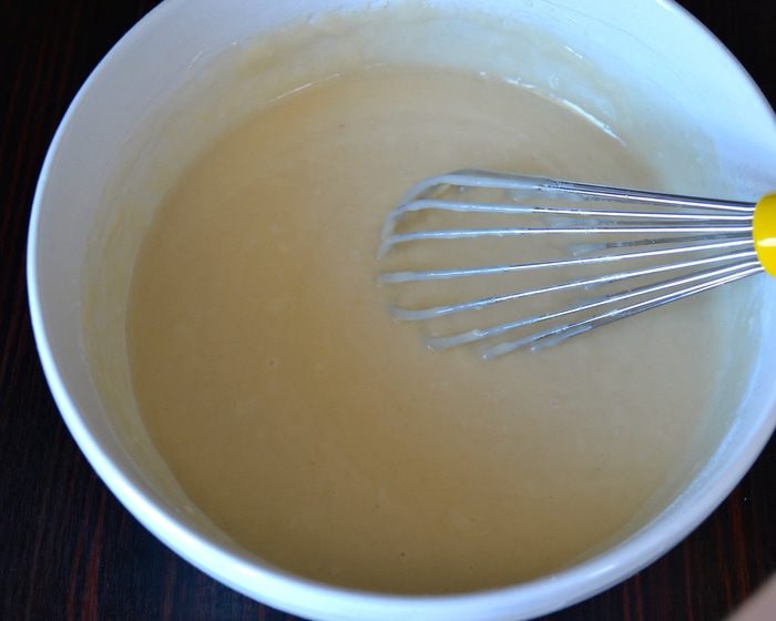 Просеять муку, разрыхлитель и крахмал (можно взять картофельный или кукурузный, не принципиально). Всыпать в миску смесь из сухих ингредиентов и снова размешать все до гладкости, без комочков.