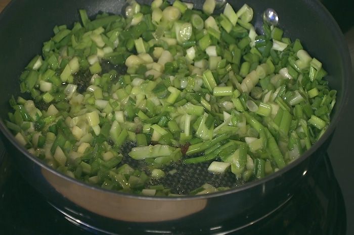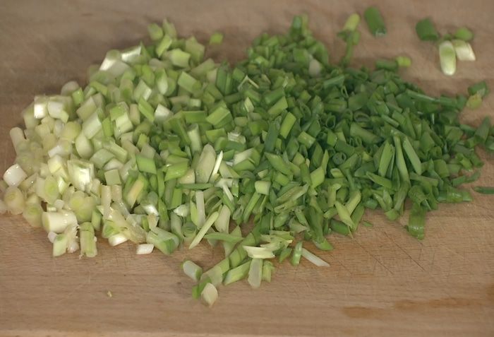 Зеленый лук мелко порезать.