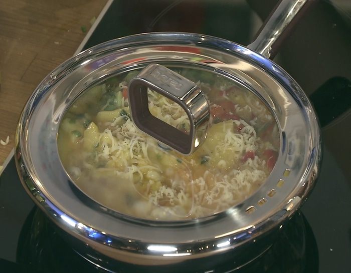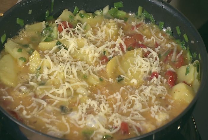Накрыть фриттату крышкой и держать на среднем огне до готовности.