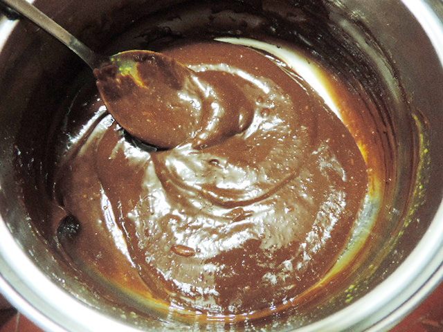 Ставим на средний огонь и, постоянно помешивая, доводим смесь до загустения, но не кипятим. Если у вас есть термометр и желание им воспользоваться, то доводим смесь до температуры примерно 83 градуса Цельсия.