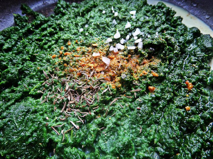 Выкладываем весь шпинат.
