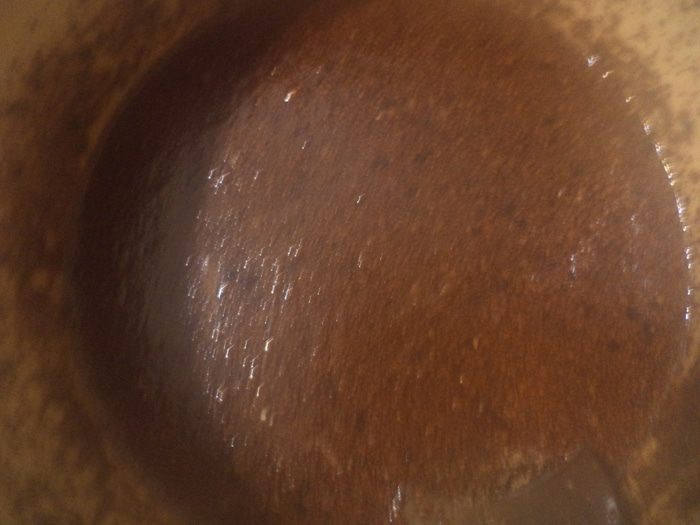 Добавить муку, тесто должно получиться как густая сметана. Хорошо вымешать тесто деревянной ложкой, до появления на поверхности теста трескающихся пузырьков.