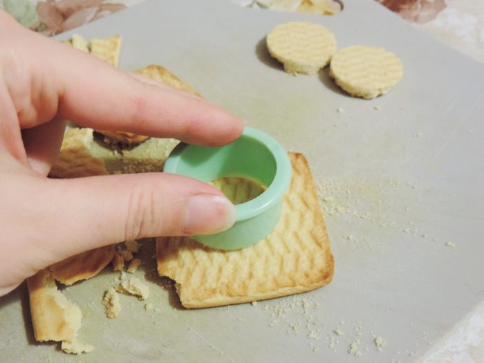 Печенье я измельчила в крошку в блендере, можно взять скалку и полиэтиленовый пакет.