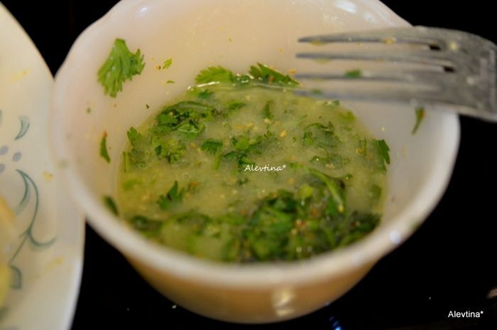 Сливочное масло растопить, смешать с порубленной свежей кинзой, добавить цедру и сок лайма.