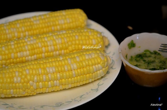 Подаем к столу, солим и перчим по вкусу. Приятного аппетита. Для справки одна кукуруза примерно 145 калорий на выходе.