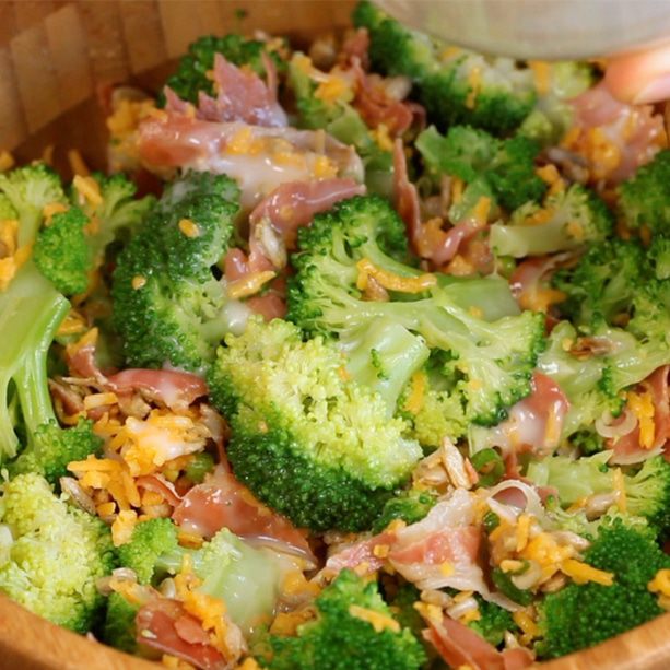 Разделить брокколи на соцветия и отварить в кипящей воде 2-3 минуты.