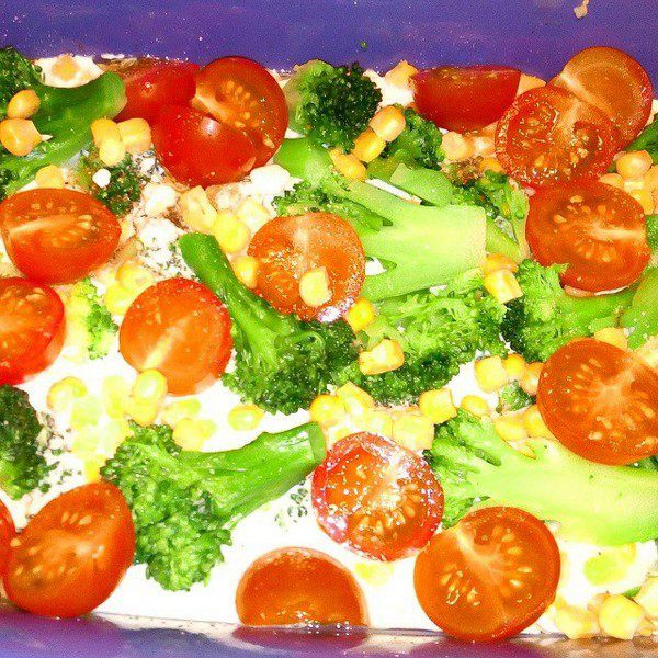 Количество овощей зависит от размера формы, пропорции – в соответствии с вкусовыми пристрастиями. В моем варианте отдается предпочтение брокколи, все остальное – для цвета и оттенков вкуса.