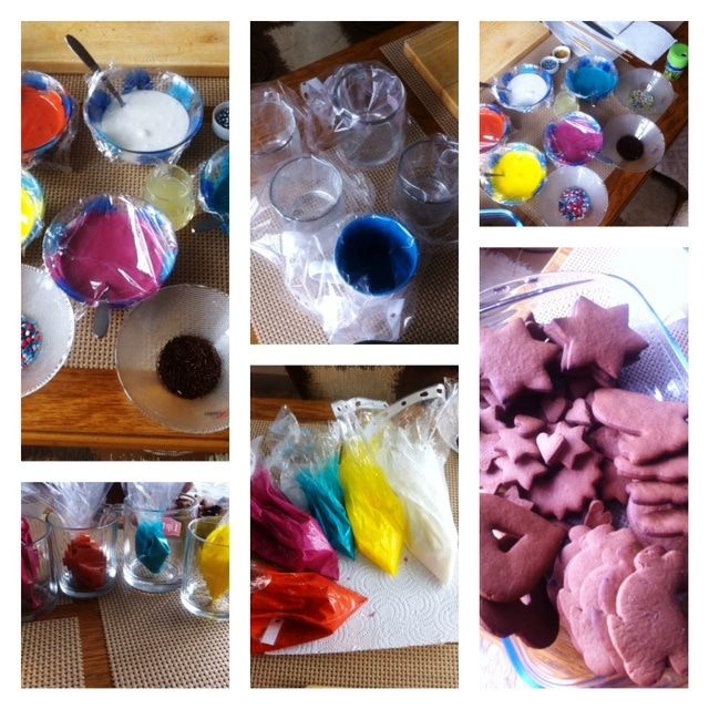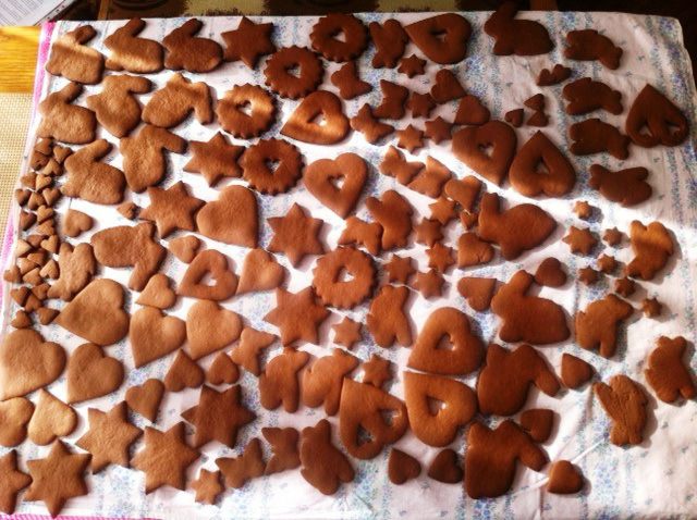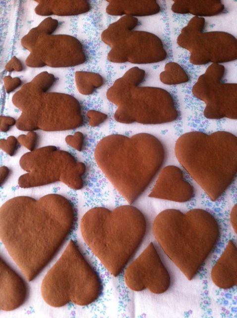 Пряники лучше выпекать за сутки до украшения: готовые пряники можно завернуть в пергамент или пищевую пленку, я накрыла чистым полотенцем и оставила на столе, т.к. дома никого до вечера не бывает и пряники не исчезли бы:).