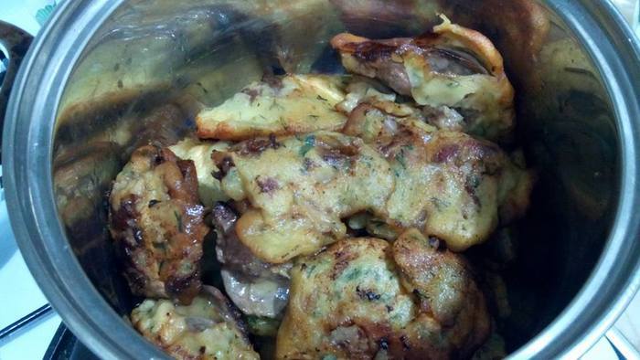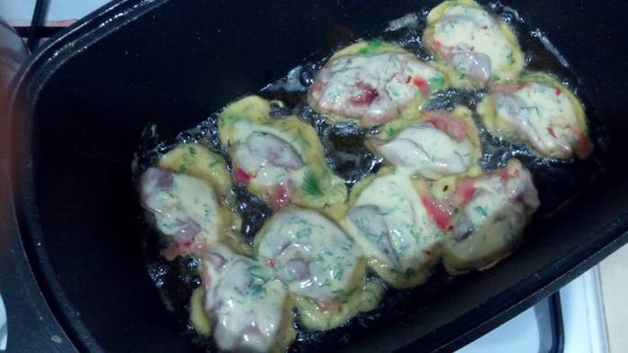 Всю печень сразу опустила в кляр.
