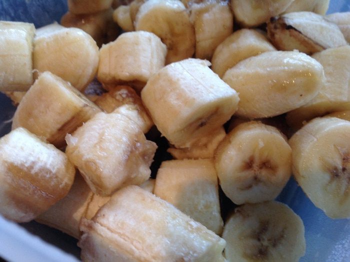 Бананы почистите, порежьте и поставьте в морозилку на 30 минут.