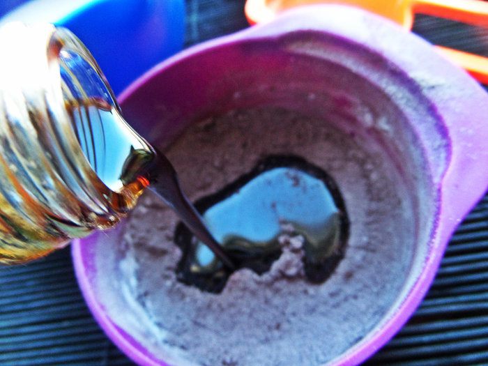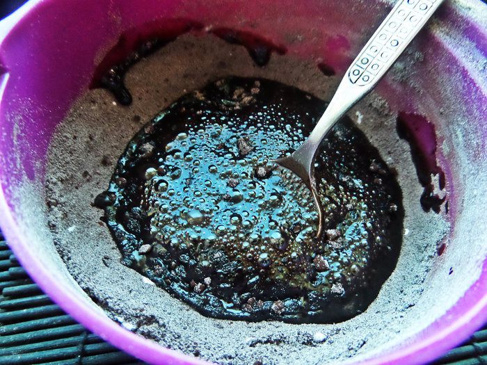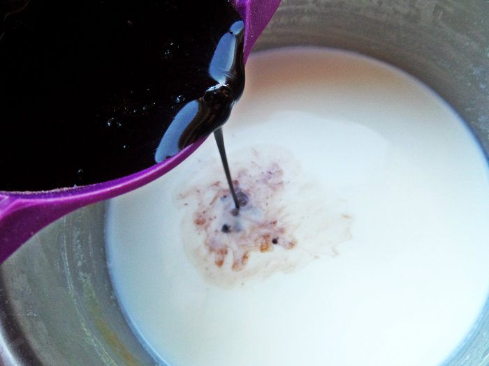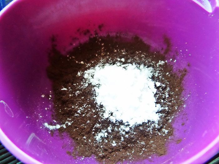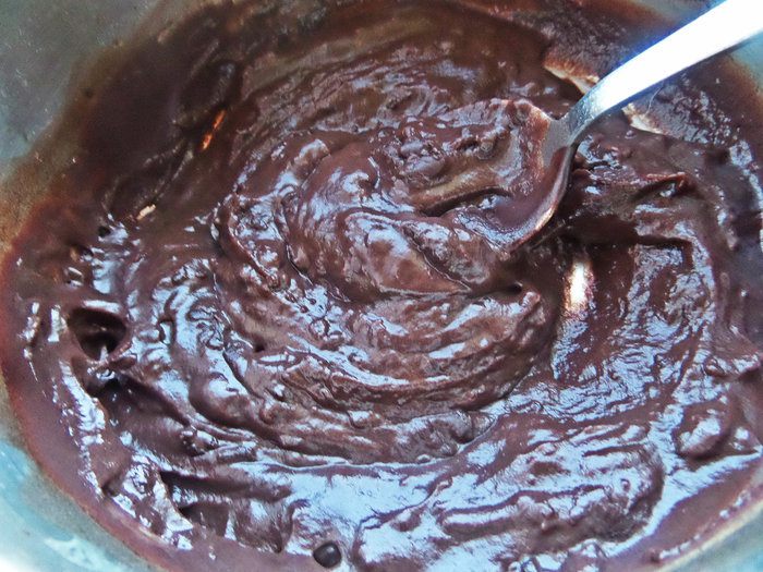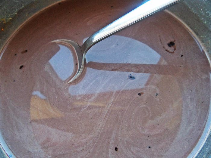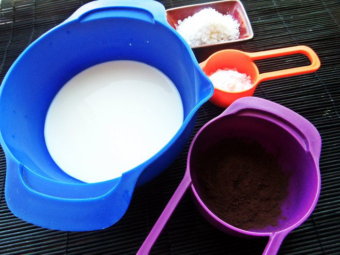 Смешиваем какао с крахмалом. Густоту регулируем на этом этапе, уменьшая или увеличивая количество крахмала.