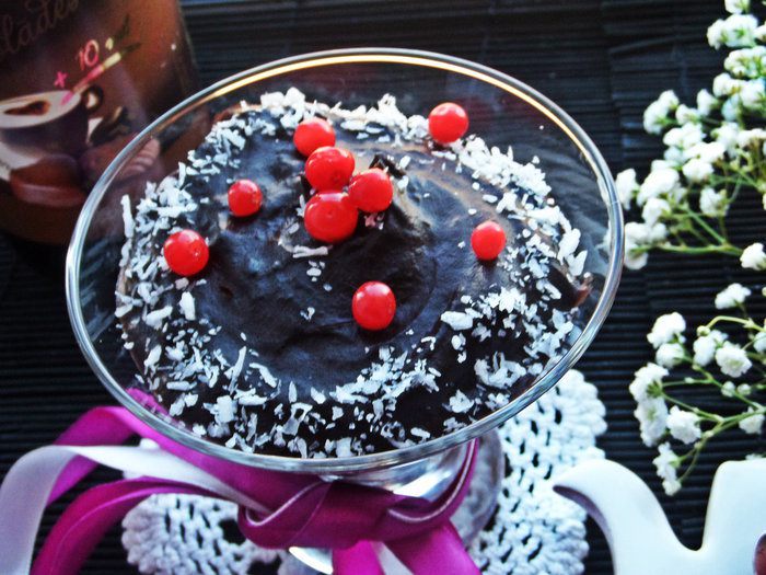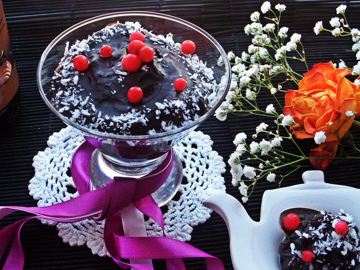 В десерте смешались 3 аромата: шоколадный, кофейный, кокосовый. Для баланса добавила кислинки-ягоды брусники!
