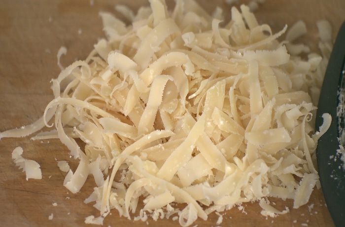 Тарт с начинкой посолить, поперчить, посыпать натертым сыром все, кроме желтков, и отправить в разогретую духовку на 10 минут.