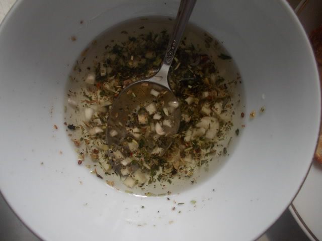 Приготовить заправку, чтобы она настоялась. Прованские травы смешать с измельченным чесноком и полить любым вкусным маслом, 3 ст.л. чтобы настоялось.