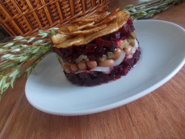 Всем известный и всеми любимый салатик, но я немного подправила по своему вкусу заправку, вместо картофеля в мундире у нас присутствуют чипсы. Но, самое главное, что салатик очень красивый и его можно подать даже на праздничный стол, что я и сделала. Вербное Воскресенье у нас было вкусное!