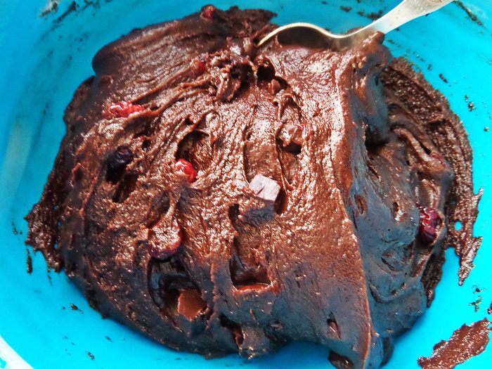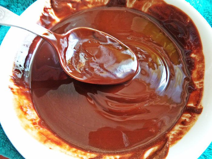 Когда шоколад станет мягким, перемешать до однородности.