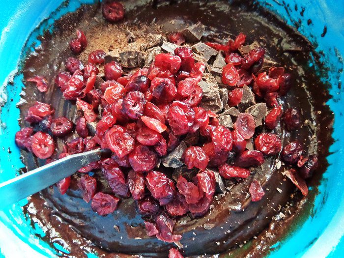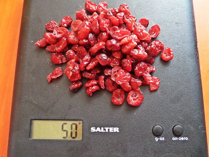 Вяленую вишню или клюкву промыть, просушить (если была развесная).