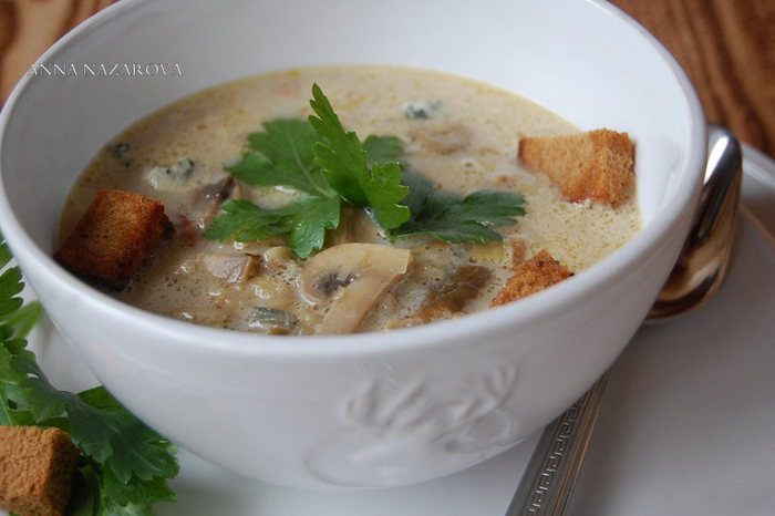 Для сухариков – хлеб нарезать кубиком, сбрызнуть оливковым маслом и подсушить в духовке.