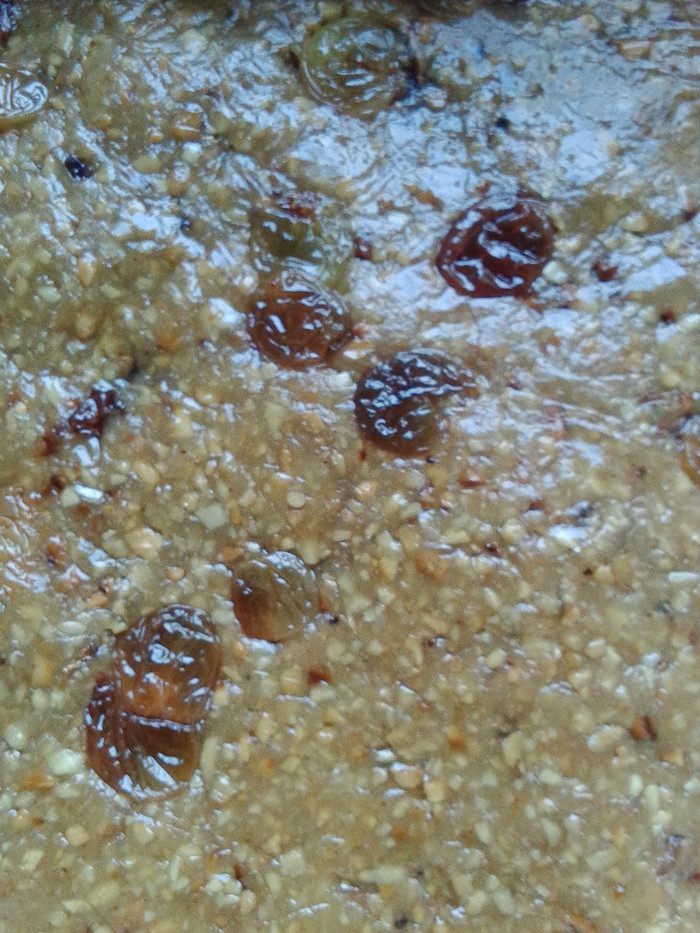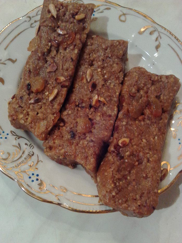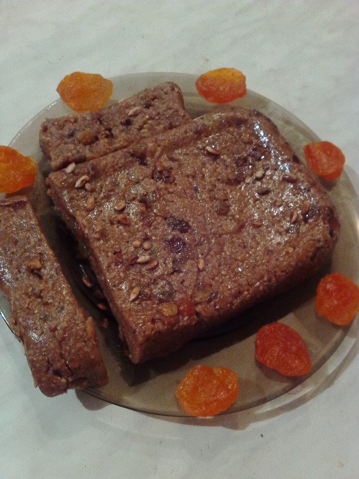 Полученую массу смешать до однородности и не забыть добавить изюм. Готовую халву выложить в форму, застеленую пищевой пленкой и убрать в холод. Когда охладится, можно нарезать на порции и подавать к чаю, кофе, молоку