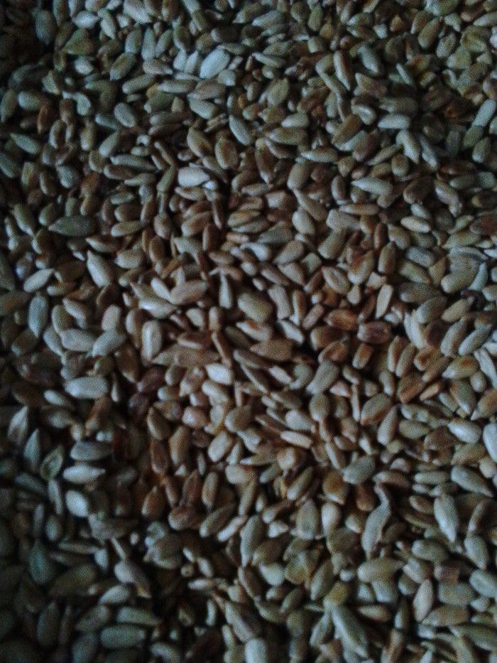 Семечки очищенные подсушить на сухой сковороде до золотистости, перемолоть их удобным для Вас способом.