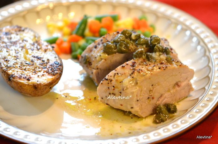 Подаем свинину под соусом из каперсов. Приятного аппетита.