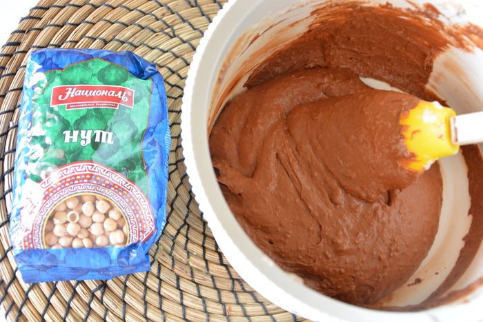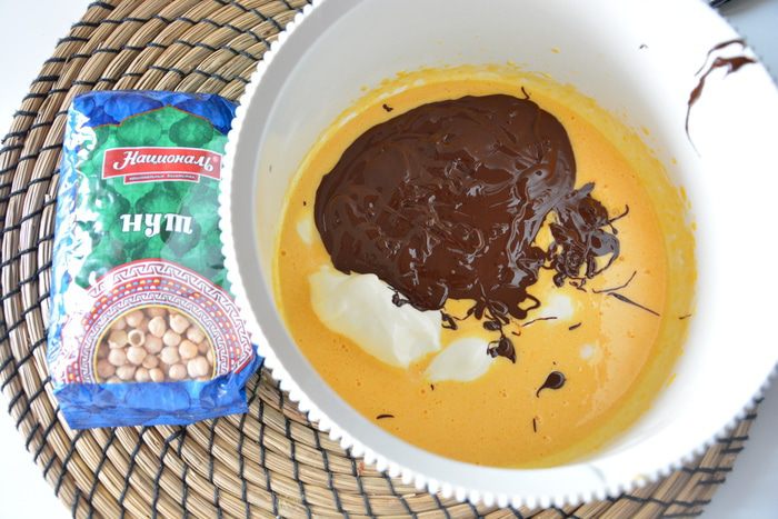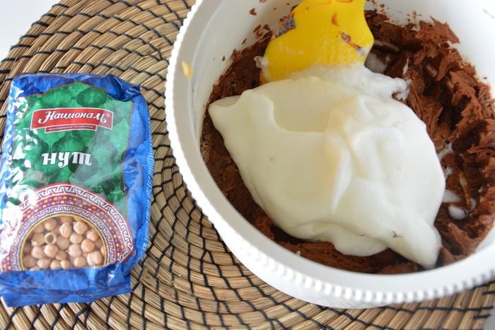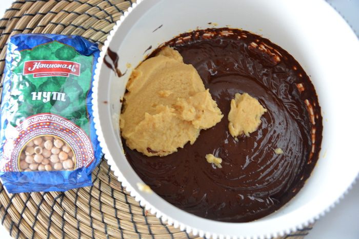К шоколадной массе добавить нутовое пюре и хорошо перемешать.