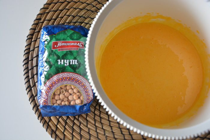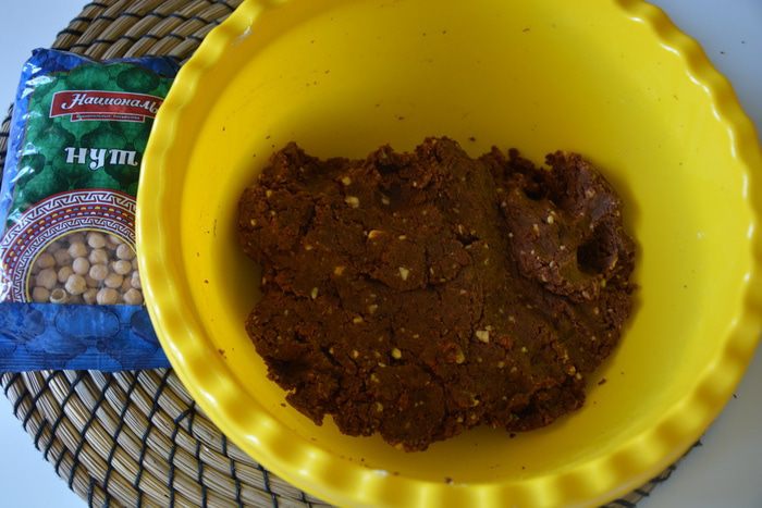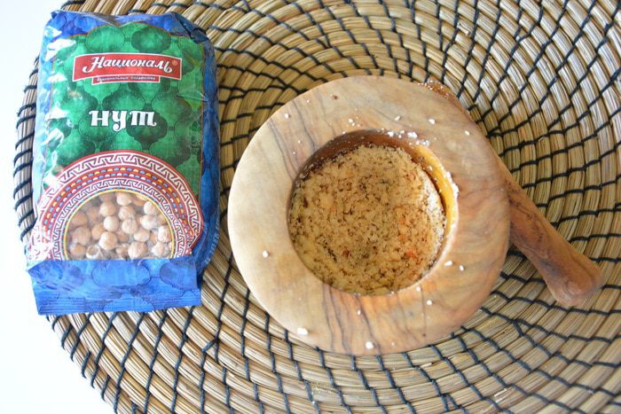 Нут ТМ «Националь» замочить на ночь в воде. Утром отварить в новой воде в мультиварке 1 час 20 минут в режиме «Варка». Измельчить нут в блендере, добавив немного воды. Нам нужно 160 г нутового пюре.