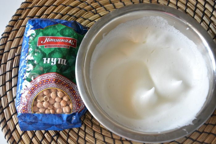 Взбить белки до крепких пиков.