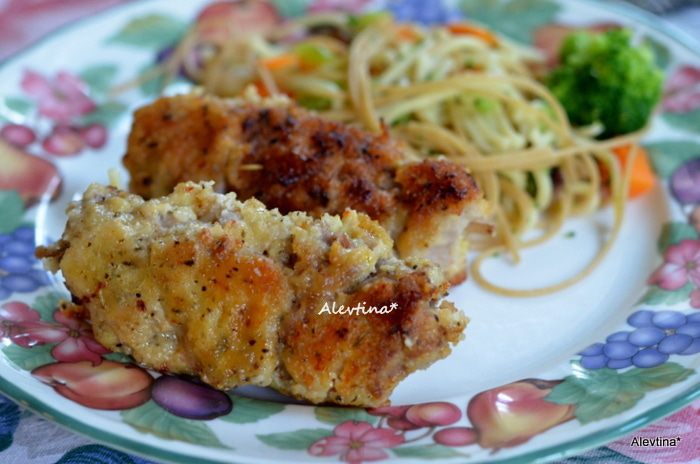 Название рецепта уходит в 1908 г в период Великой Депрессии США. В то время курица была дороже свинины и повара часто использовали свинину вместо курицы. Готовят по этому рецепту только на сковороде. С тех пор возник вот такой замечательный и вкусный рецепт, который мне, к примеру, понравился сразу после того, как я попробовала его 15 лет назад. Повторяю его, когда вновь вспоминаю о нем.