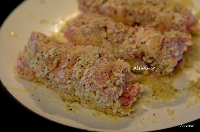 После в японских сухарях панко или в обычной сухой хлебной крошке.