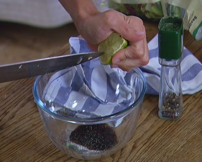 Из половинки лайма выжать сок.