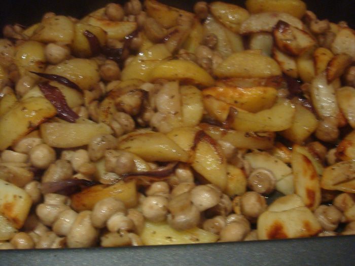 Хрустящий жареный картофель и нежные сочные грибочки. С этим вкусным блюдом можно легко обойтись без мяса.