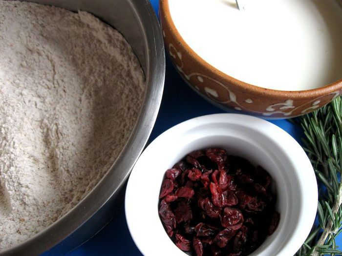 Воспользуюсь советом молодого ирландского шеф-повара Невина Магуайра и добавлю к тесту розмарин и сушеную клюкву.