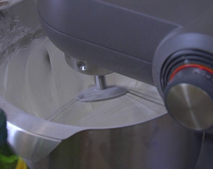 Влить ванильный экстракт и яблочный уксус, увеличить скорость комбайна и взбивать все еще минут 10.