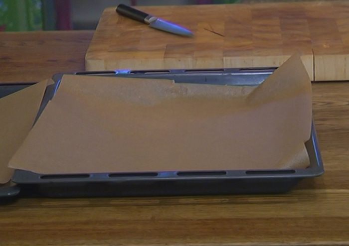 Противень выстелить бумагой для выпечки.
