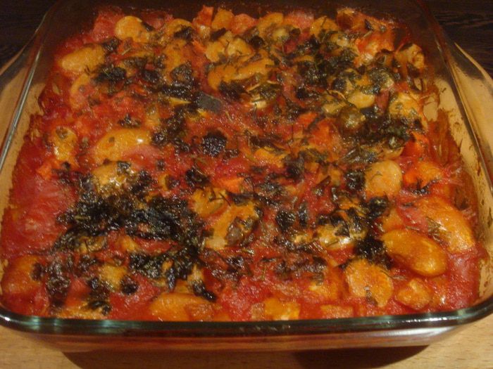 Выкладываем фасоль в огнеупорную форму для запекания, присыпаем зеленью, если нужно добавляем немного водички. Ставим в заранее разогретую духовку на 30-40 минут.