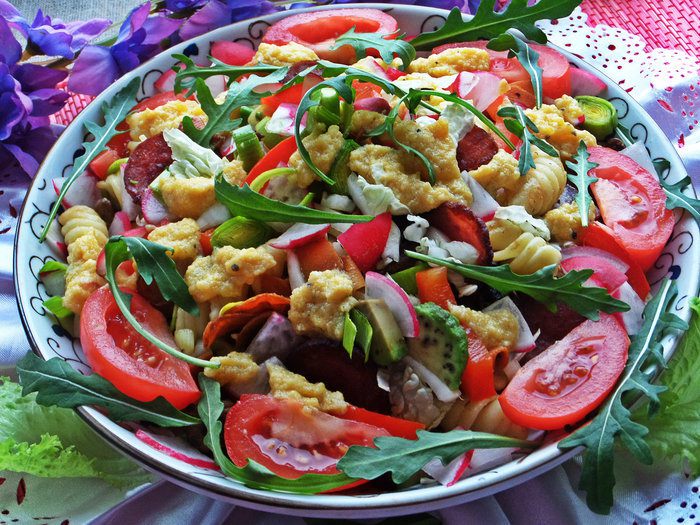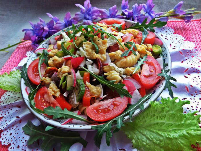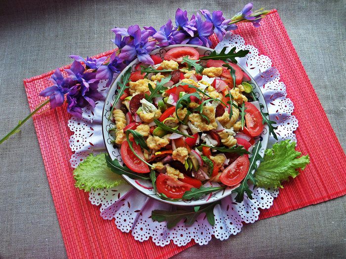 Почему праздничный, хотя с пастой? Потому что много добавок напридумывалось и готовила на 8 марта