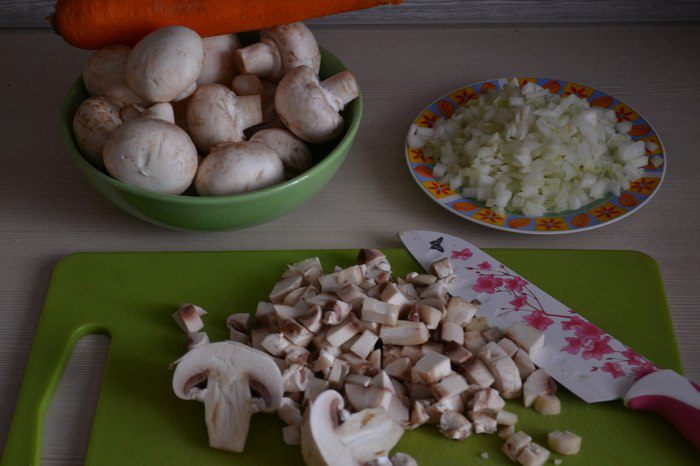 Шампиньоны нарезать кубиками.