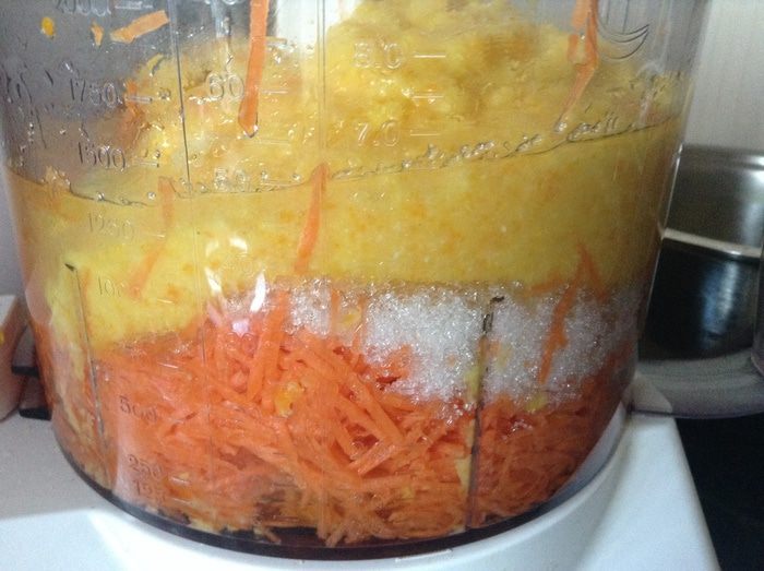 Апельсины: у меня было 4 мини апельсина, если обычные, достаточно двух. С них надавить 250 мл фреша, остатки сложить в сотейник, залить водой, добавить специи по вкусу (у меня кардамон и бадян) и варить 30 минут. Остудить, перебить блендером, отмереть 250 гр смешать с фрешом. Это все можно не делать, взять просто 500 мл фреша или 250 если на полпорции.