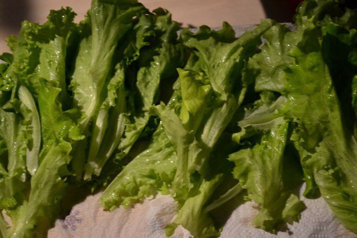 Листья салата промыть, обсушить. Я рвала руками, но можно измельчить ножом.