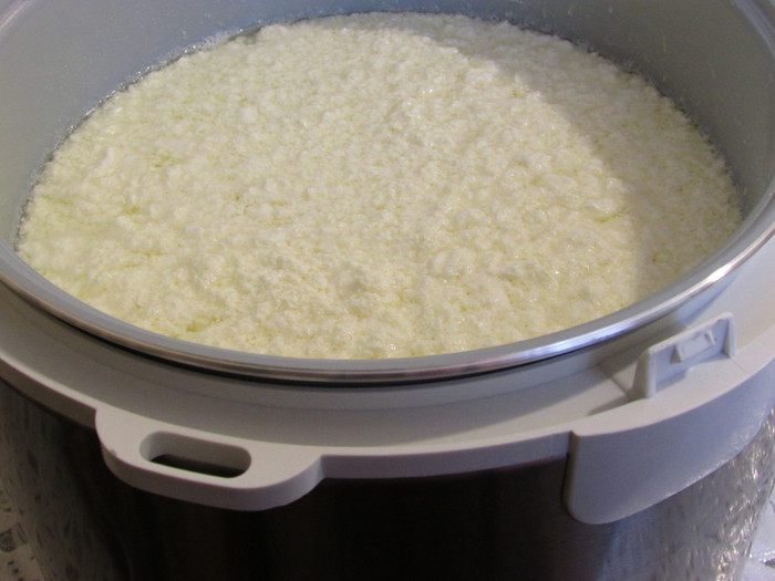 В чаше мультиварки смешать молоко, кефир и сметану. Закрыть мультиварку, включить режим "тушение". Около 20 минут (главное, не доводить до кипения, может быть, хватит и 15 минут). Открыть мультиварку, все аккуратно перемешать. Включить режим "подогрев" на 1,5 - 2 часа (у меня ушло 1,5 часа).