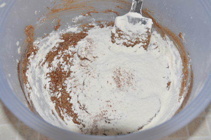 Включить разогреваться духовку до 180 градусов. Металлическую форму смазать маслом, застелить пергаментом и еще раз смазать. Даже если у Вас силиконовая форма, все равно её надо смазать сливочным маслом. Кекс очень нежный и достать его будет проблематично, если хорошо не подготовиться.