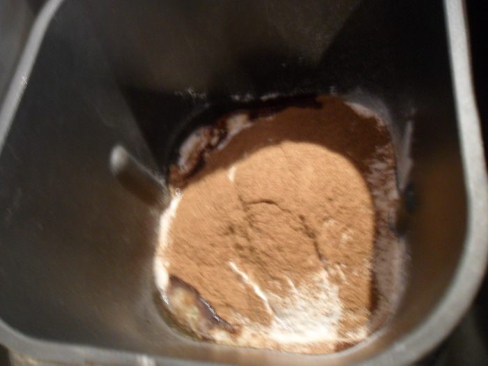 Закладываем в хлебопечку ингредиенты в такой последовательности: вода, растительное масло, сахар, соль, ржаная мука, пшеничная мука, разрыхлитель, дрожжи, солод.
