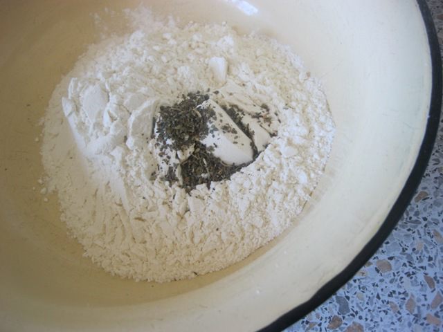 Муку смешать с сушеным базиликом.