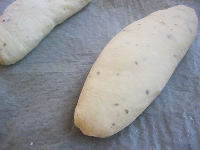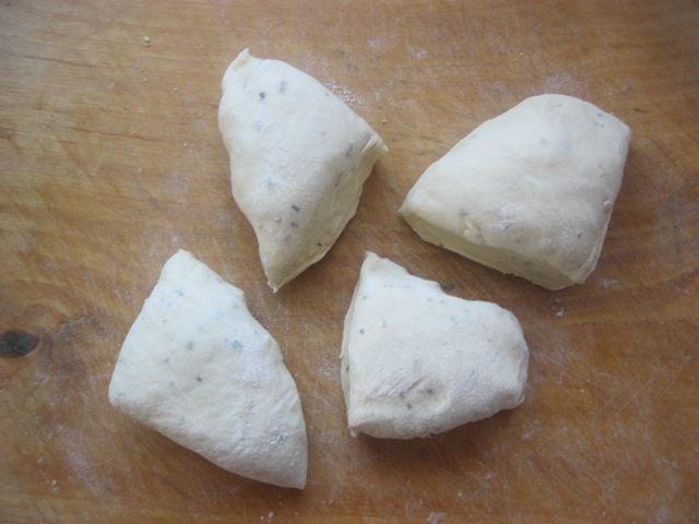 Каждую часть раскатать в продолговатую лепешку - длиной 10 см и шириной - 8 см.