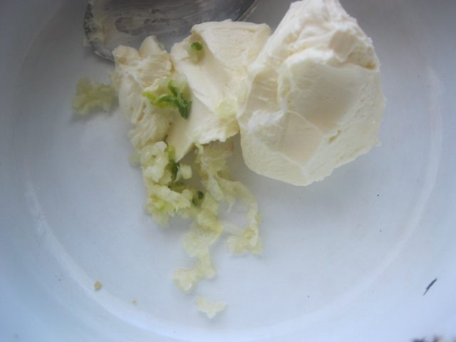 Мягкое сливочное масло положить в ковшик, сюда же добавить чеснок (продавленный через пресс).
