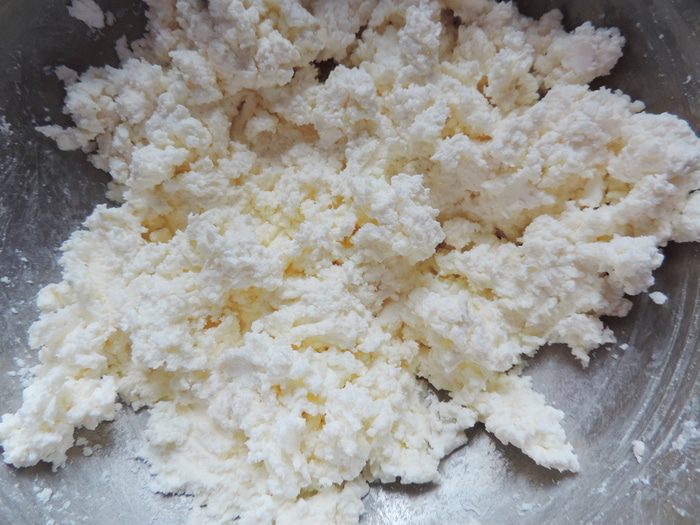 Добавить цедру половинки лимона (только желтую часть), сахар, молотые белые сухари (можно взять панировочные, только попробуйте их и убедитесь, что они из белого хлеба). Перемешать все до однородности.