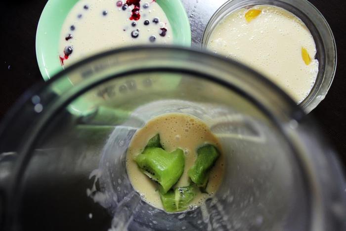 Раскладываем по креманкам и наслаждаемся. Ягоды и фрукты можно брать любые. Учитывайте, что смородина дает легкую кислинку, а киви горчинку.