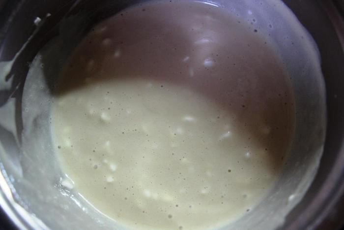 Зефир разламываем на кусочки и растапливаем в концентрированном молоке на огне или в микроволновке.
