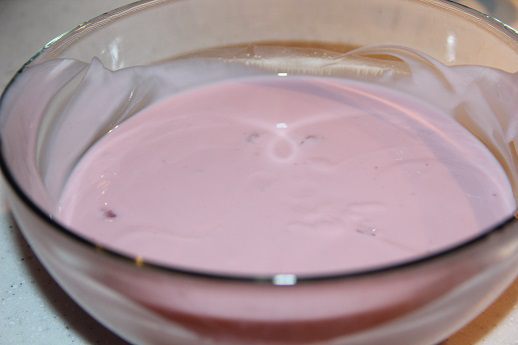 Когда желатин набухнет, распустить его на водяной бане и смешать с йогуртом.